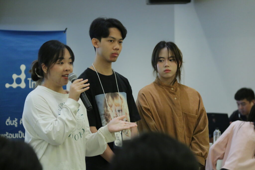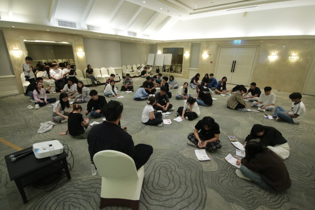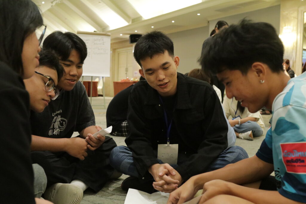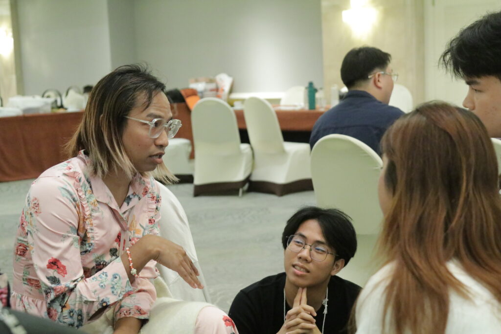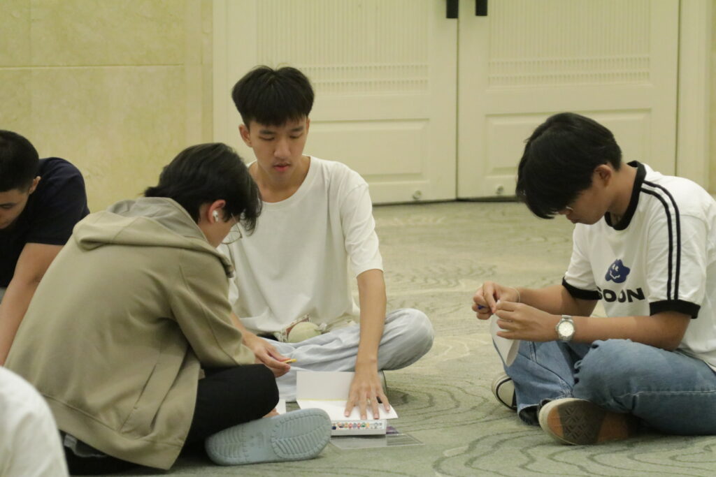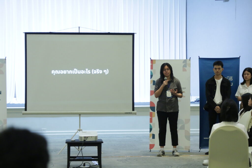 หลังจากลุยพาเนลเพิ่มแรงบันดาลใจมาทั้งวัน ก็ถึงเวลาเติมพลังด้วยข้าวมื้อเย็นแสนอร่อย และกลับมาต่อกันด้วย REFLECTION & DINING TALK เวลา 19:00-21:00 น. ที่ชวนน้องๆ มาทำความรู้จักตัวเองให้มากขึ้นผ่านกระบวนการสังเกตความคิดและการแสดงออก และเรียนรู้ตัวตนระหว่างกันเพื่อการเติบโตอย่างเข้าใจ ผ่านการให้น้องๆ แนะนำตัวทำความรู้จักกันระหว่างกลุ่ม จับคู่เล่นเกมสลับกันตอบคำถาม และวาดรูป 4 ช่องเพื่อทบทวนตัวเองผ่านคำถาม “ตัวฉันในตอนนี้”. “ตัวฉันที่อยู่ในโครงการนี้”, “เรื่องยากๆ ที่ก้าวข้ามมาได้ใน 3 เดือนนี้” และสุดท้าย “ฉันในเวอร์ชันที่อยากเป็น”