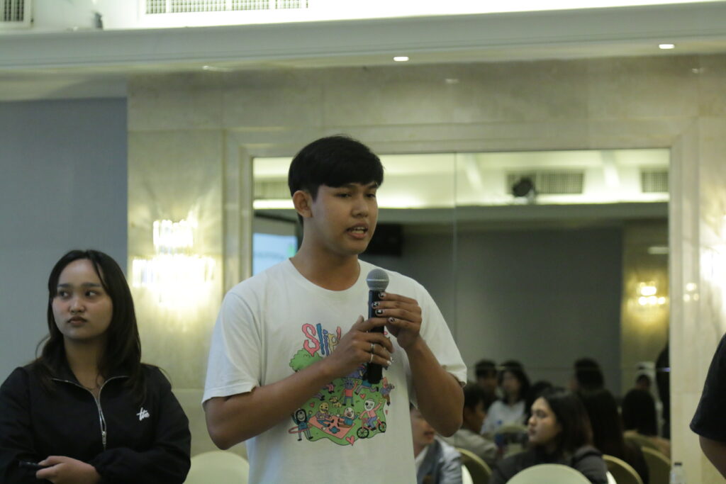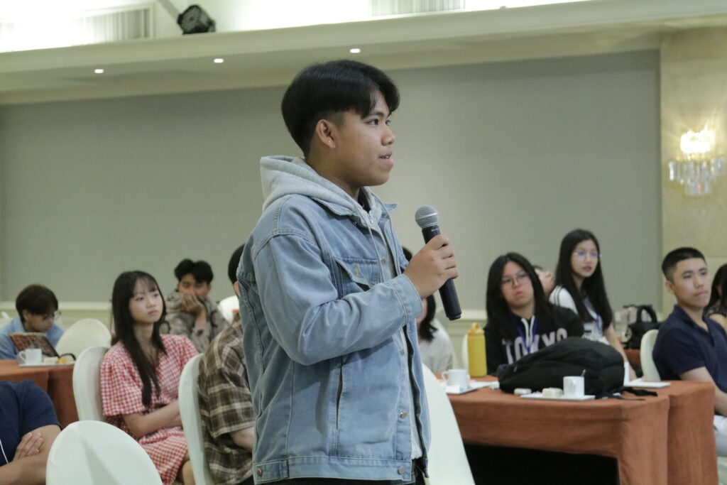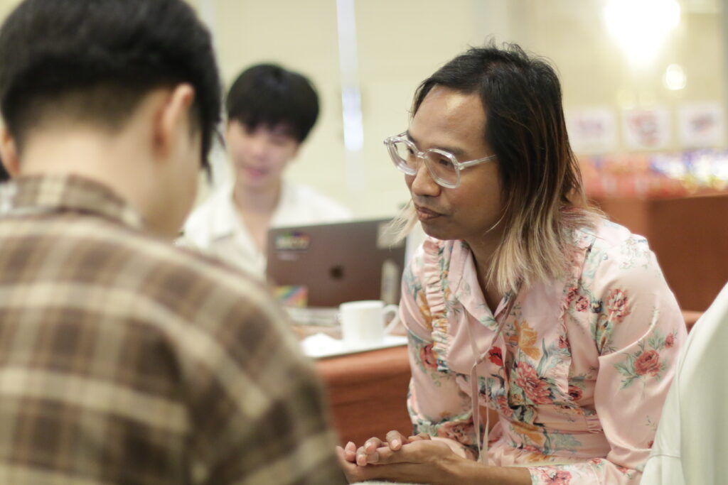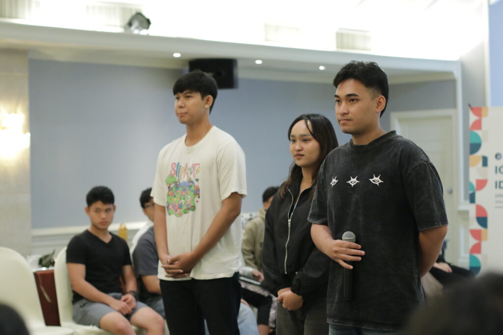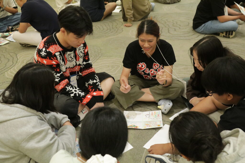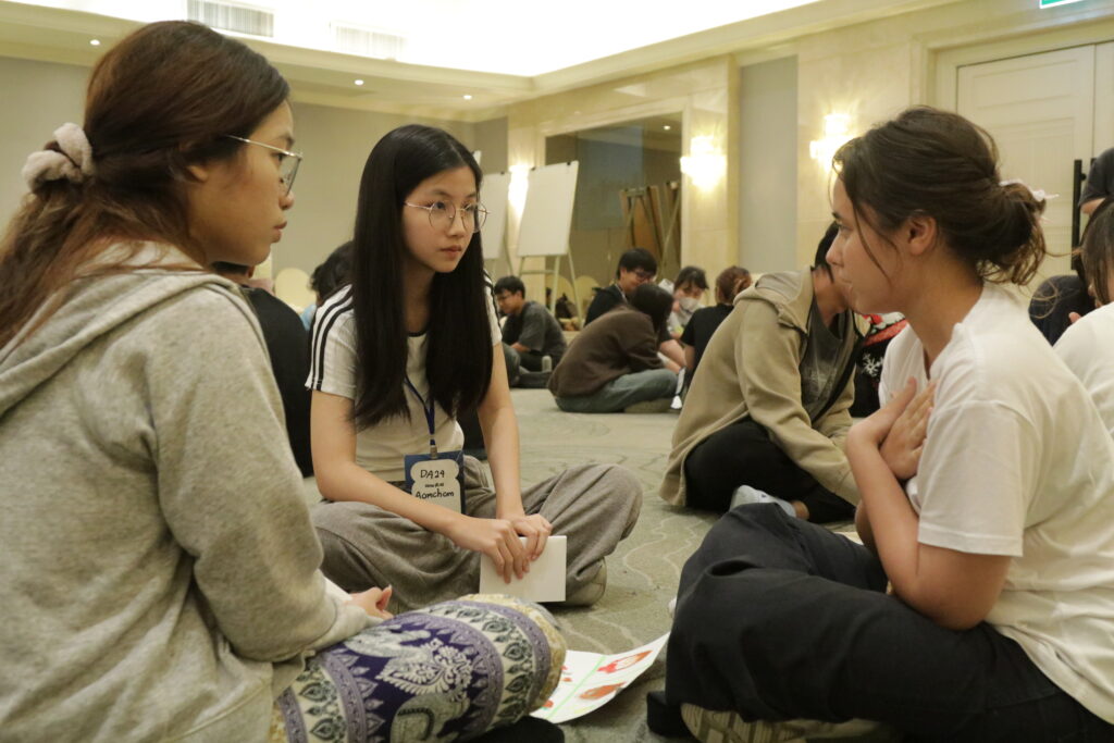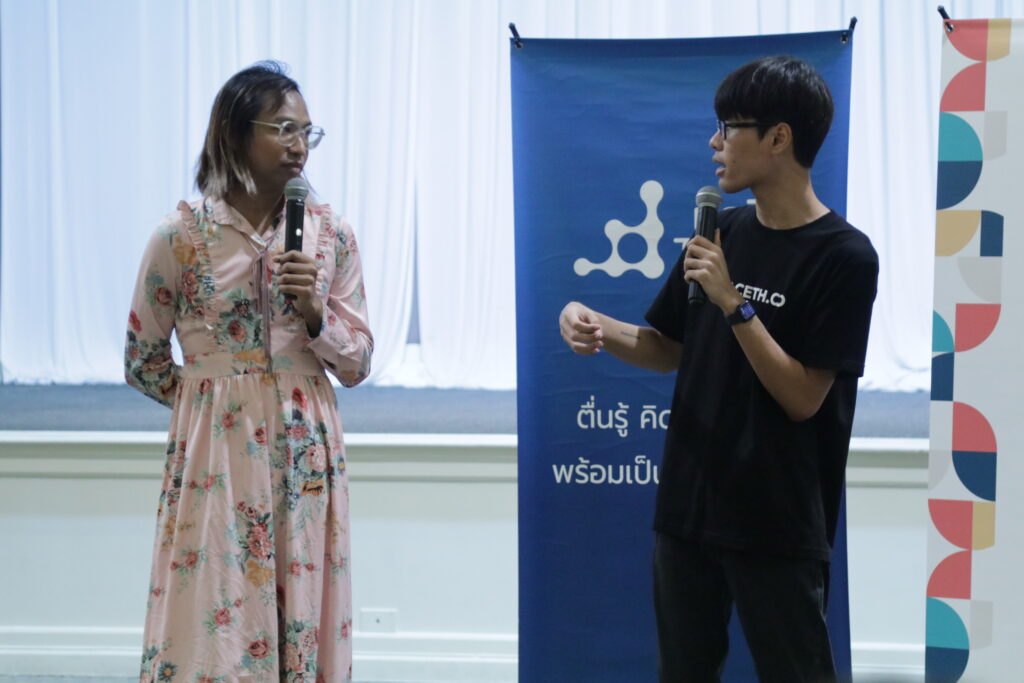 หลังจากลุยพาเนลเพิ่มแรงบันดาลใจมาทั้งวัน ก็ถึงเวลาเติมพลังด้วยข้าวมื้อเย็นแสนอร่อย และกลับมาต่อกันด้วย REFLECTION & DINING TALK เวลา 19:00-21:00 น. ที่ชวนน้องๆ มาทำความรู้จักตัวเองให้มากขึ้นผ่านกระบวนการสังเกตความคิดและการแสดงออก และเรียนรู้ตัวตนระหว่างกันเพื่อการเติบโตอย่างเข้าใจ ผ่านการให้น้องๆ แนะนำตัวทำความรู้จักกันระหว่างกลุ่ม จับคู่เล่นเกมสลับกันตอบคำถาม และวาดรูป 4 ช่องเพื่อทบทวนตัวเองผ่านคำถาม “ตัวฉันในตอนนี้”. “ตัวฉันที่อยู่ในโครงการนี้”, “เรื่องยากๆ ที่ก้าวข้ามมาได้ใน 3 เดือนนี้” และสุดท้าย “ฉันในเวอร์ชันที่อยากเป็น”