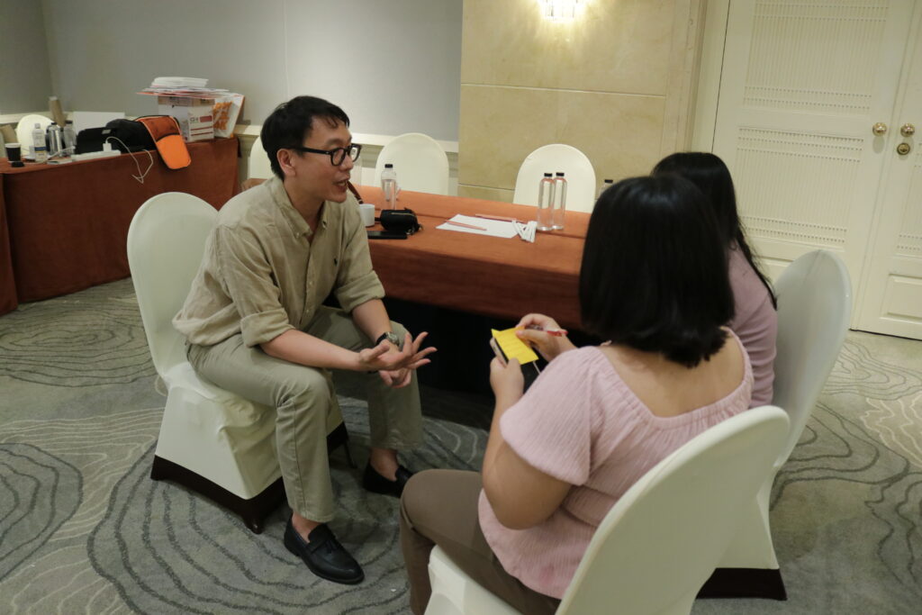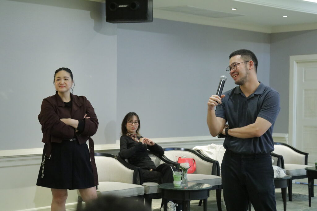 ถัดมาช่วง 13:00-15:00 น. คือ Session ของการอุ่นเครื่องเตรียมความ PRE PITCHING เพื่อขายไอเดียให้กับผู้บริหารและผู้ลงทุน จาก คุณจูน-โฉมชฎา กุลดิลก Head of Corporate Brand and Communications SC Asset และคุณไผ่-นันทสิทธิ์ สาขากร Senior Manager – Creative and Production SC Asset ที่พร้อมเผยเคล็ดลับและเล่าประสบการณ์การนำเสนอผลงานอย่างน่าสนใจและมีประสิทธิภาพ โดยคุณไผ่เล่าว่า สิ่งที่สำคัญมีหลายประการ เช่น การเตรียมตัวให้พร้อม, การทำความเข้าใจผู้ฟัง และการนำเสนอที่น่าจดจำ ผ่านความตั้งใจและความเชื่อในสิ่งที่เรากำลังจะเสนอ ซึ่งเรียกว่าเป็น ‘หัวใจ’ ของการพิชชิ่ง