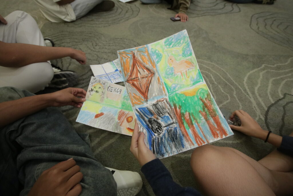 ก่อนที่จะมานั่งล้อมวงกับเพื่อนๆ ที่ทำงานด้วยกัน ให้แชร์สิ่งที่วาดและความในใจ โดยเรารับฟังกันอย่างไม่ตัดสินกัน ก่อนจะปิดท้ายวันอย่างอบอุ่นด้วยการมานั่งล้อมวงกลมและแชร์กันในวงใหญ่ ทุกคนต่างกล่าวขอบคุณซึ่งกันและกัน และเดินจับมือซึ่งกันและกันเพื่อทำความรู้จักกันให้มากขึ้น